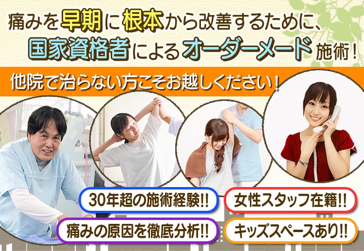 当院はこれまで30年以上、延べ3万人施術してきた実績があります。そのため、お身体に関するさまざまな・・・